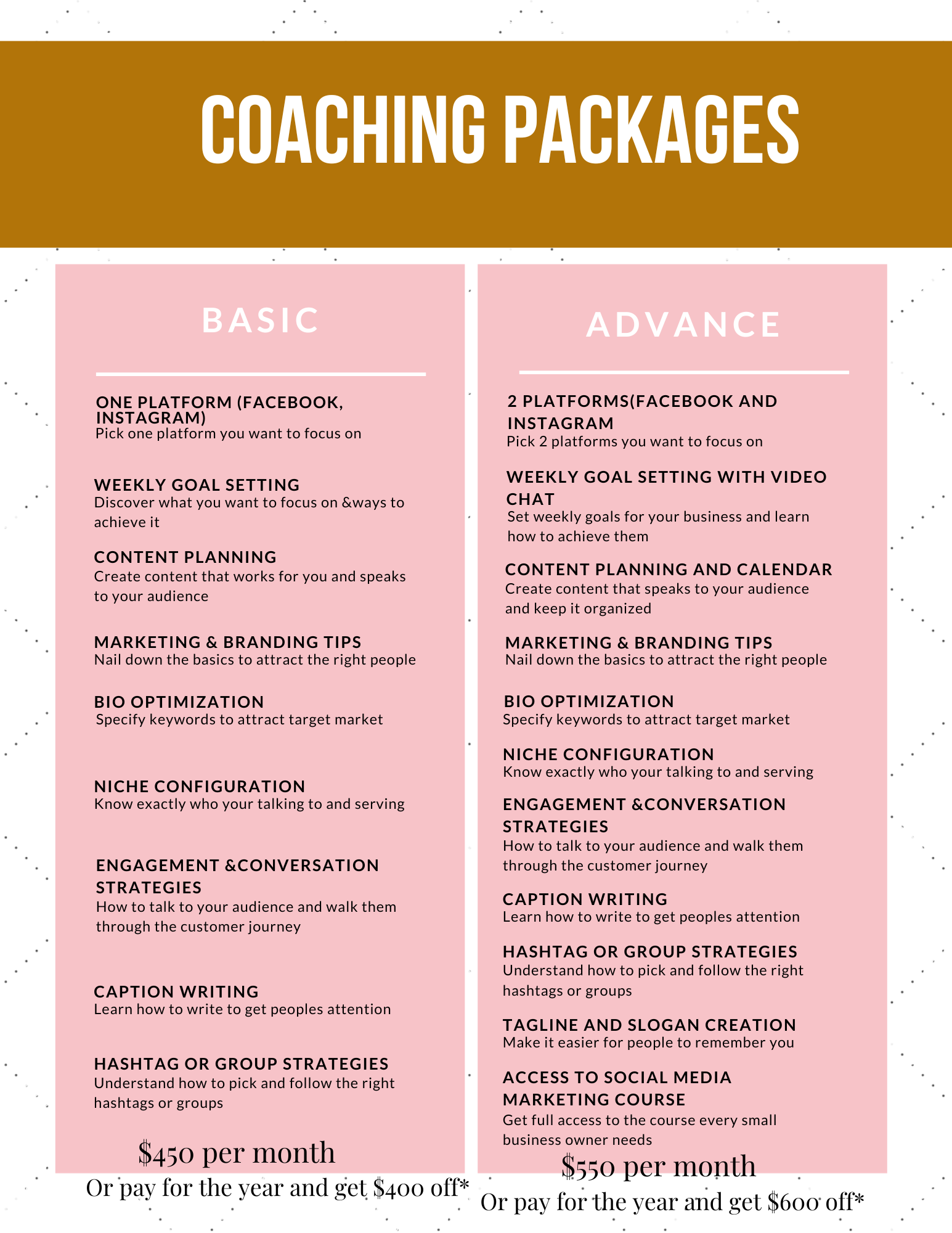 Ready to supercharge your social media game? Look no further! Our advanced social media coaching package is here to guide you to digital greatness. Gain a competitive edge as you dive deep into the world of social media marketing with personalized coaching sessions.