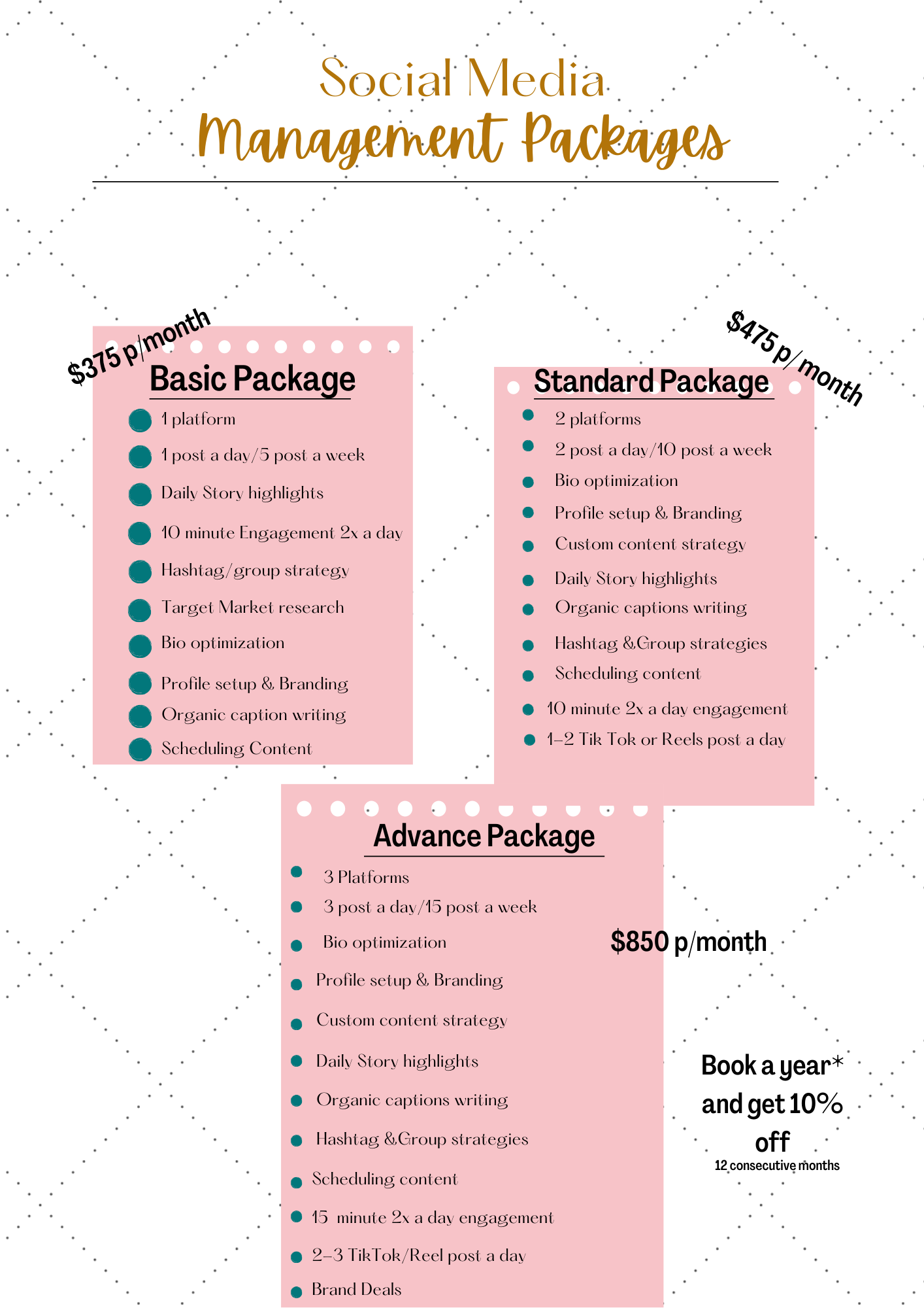 Are you ready to take the stress out of managing your social media presence? Our basic social media management package is designed to provide you with essential support to boost your online visibility and engagement. It’s ideal for businesses looking to establish a strong online presence without the complexity of advanced strategies. Contact us today to get started and unlock the potential of social media for your brand.